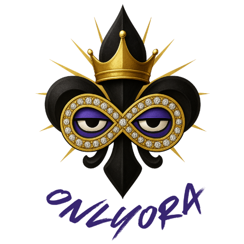 Our logo is made to deliberately display the perfect imperfections of the hilarious human journey through life: fleur de lis represents new beginnings and when fitted with the the crown and shine in the. background, this logo projects manifesting royal energy, power and oppurtunity for all as symbolized by th einfinisty sign encrusted in diamonds symbolizing your belief to the strength of your soul.